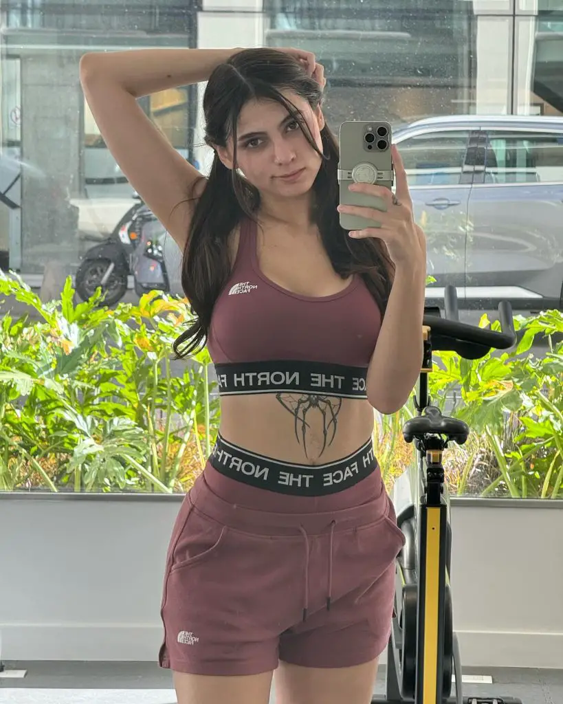 Micaela Ari Demonmika luce lencería de red negra, resaltando su estilo atrevido y sus tatuajes