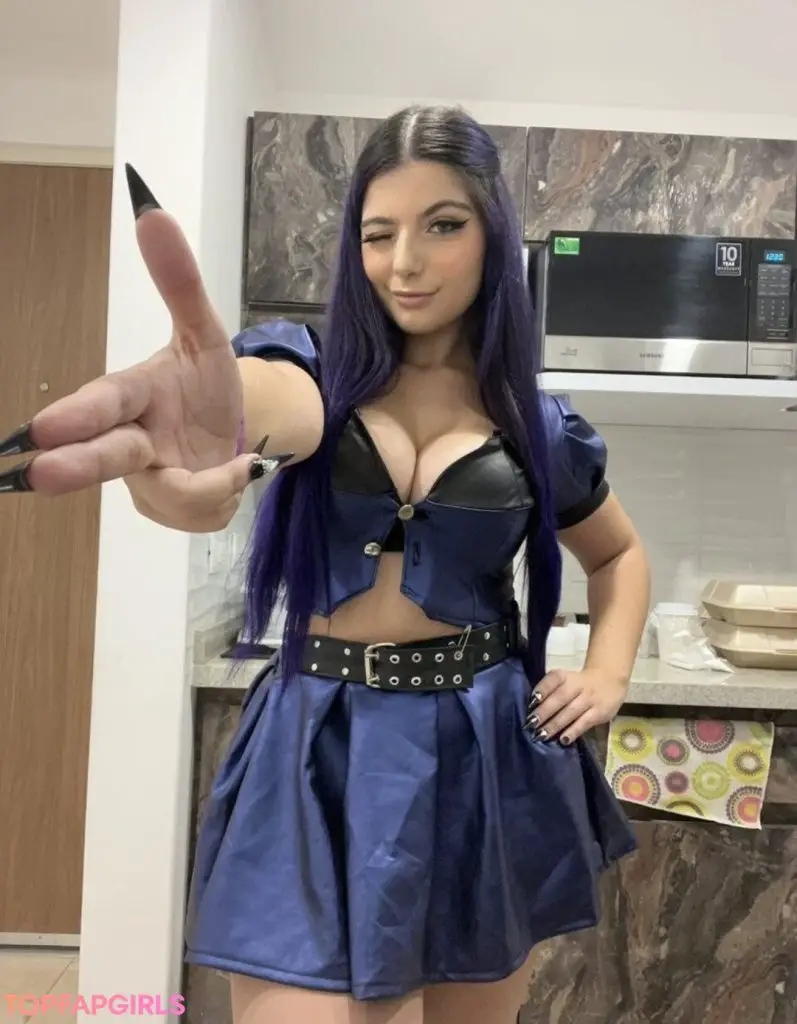 Micaela Ari Demonmika luce un traje de látex negro, mostrando su estilo gótico y atrevido