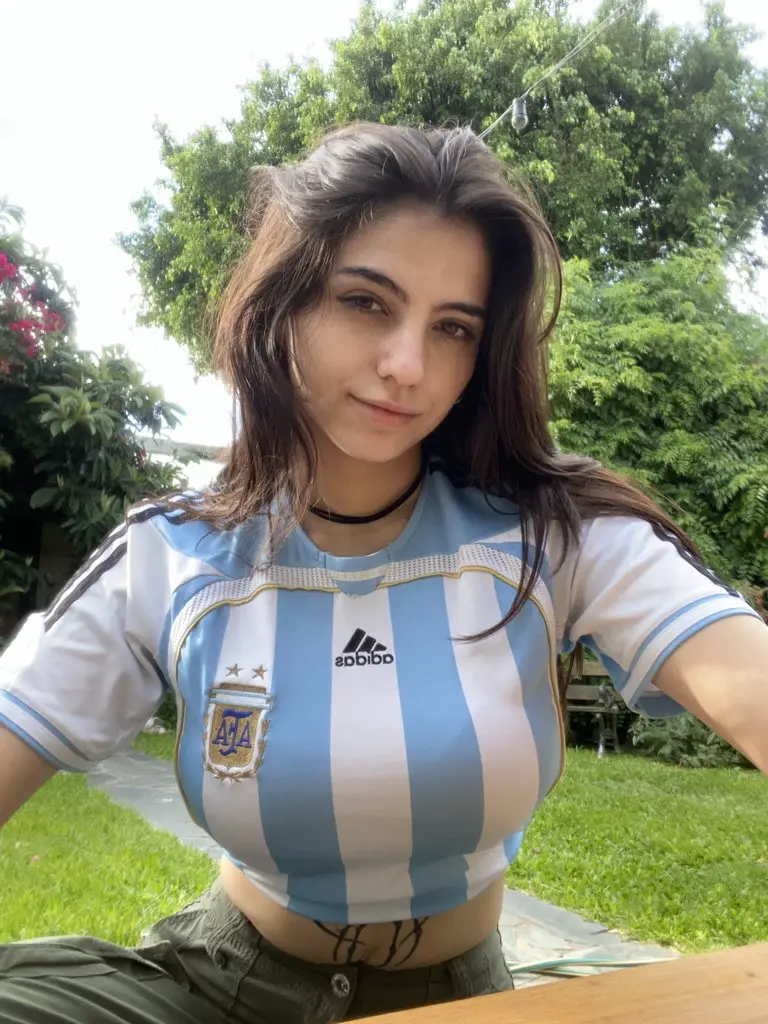 Iaaras2 celebra su orgullo argentino con la camiseta de la selección nacional.
