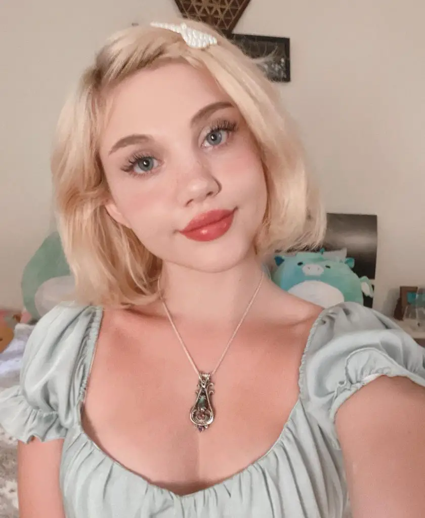 PeachJars en un conjunto de lingerie blanco, mostrando su lado provocador.