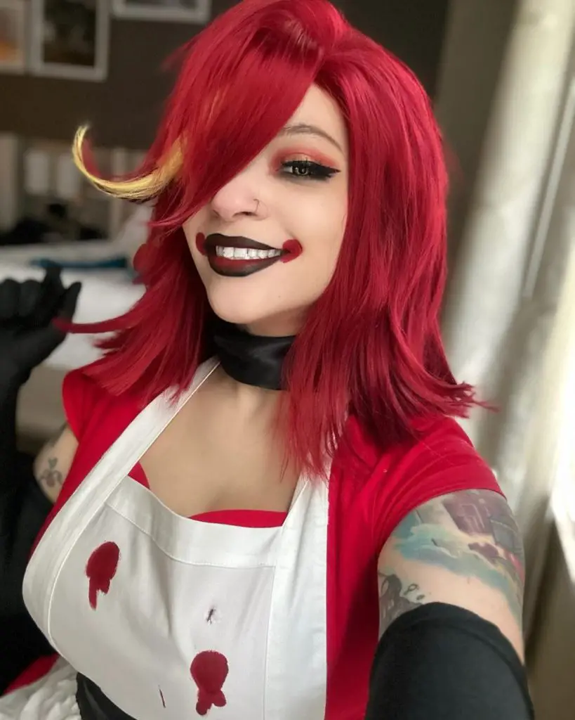 Alida Simone transforma su estilo con una peluca roja vibrante y un vestido sensual.