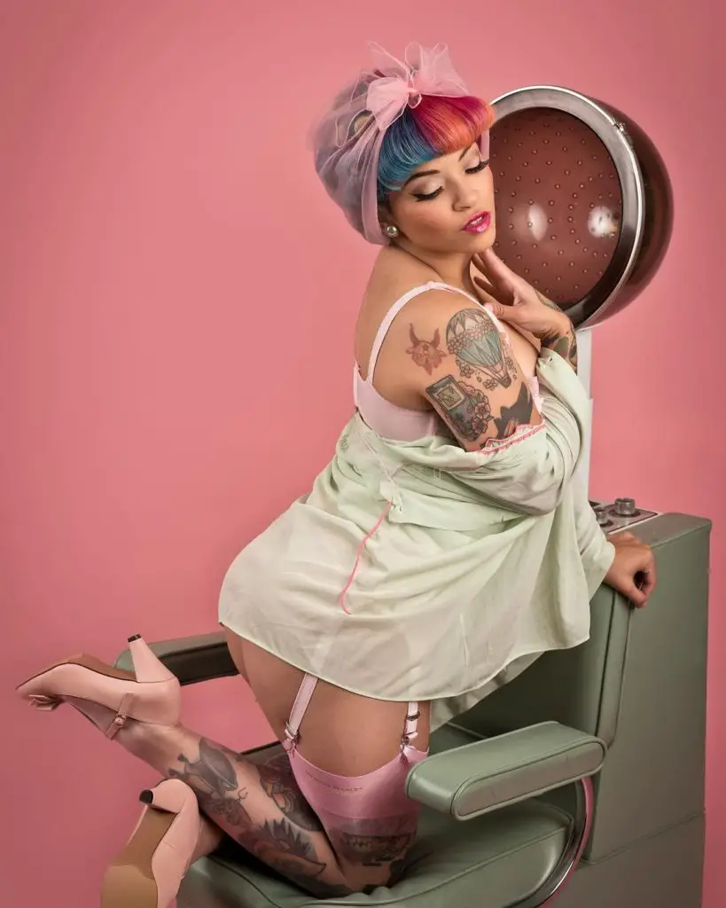 Alida Simone presenta un look de inspiración retro en un ambiente moderno.