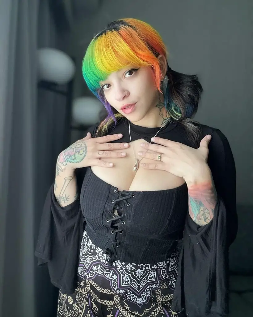 Alida Simone posa con una actitud audaz mientras luce una falda negra y un top ajustado.
