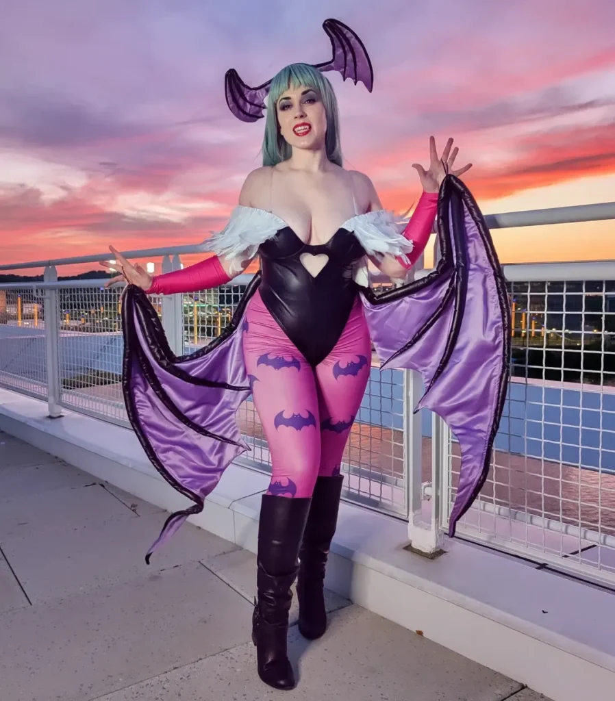 Samurai Jill en un sensual cosplay de Morrigan de Darkstalkers.